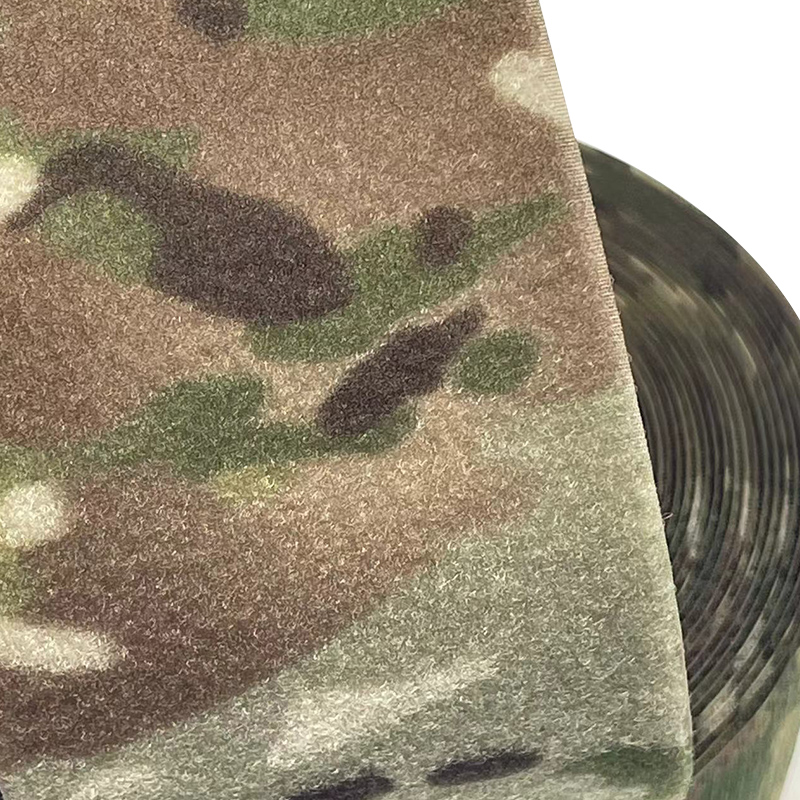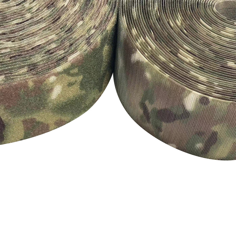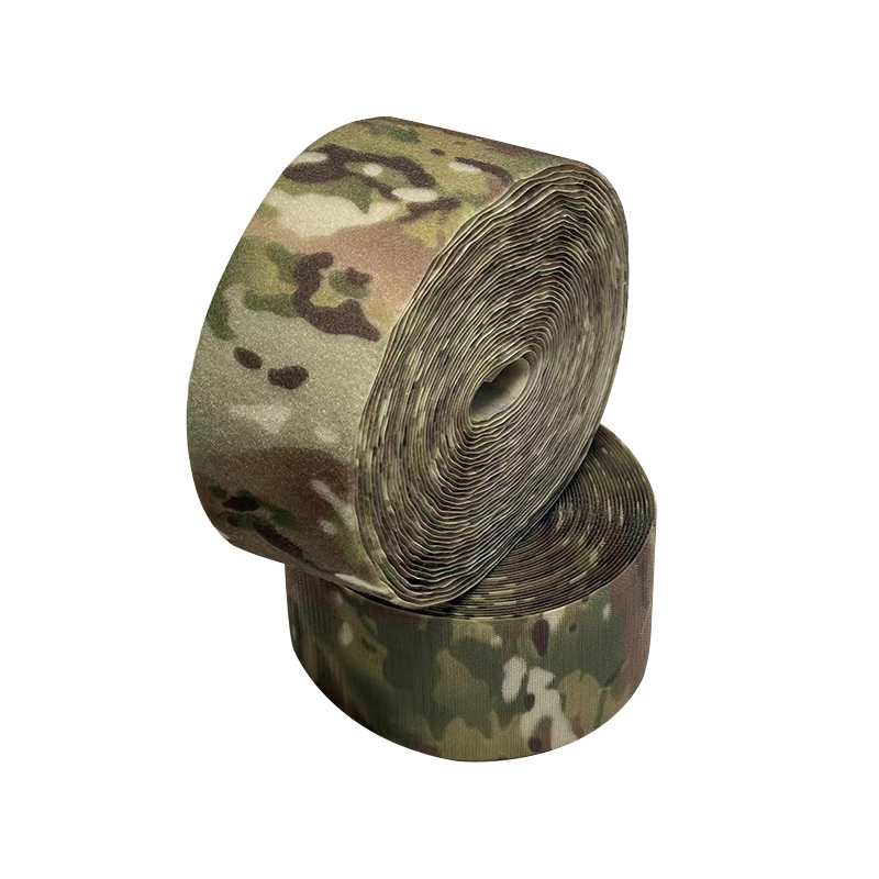 选用高强度尼龙面料织造,耐磨抗撕裂性能优异,经多次开合测试仍能保持稳定粘接力,能承受高强度的拉扯与负重,而且具备良好的耐候性,在雨雪、紫外线照射等复杂环境下不易老化;其次,迷彩印花工艺精湛,色牢度高,水洗、暴晒后不易褪色,能与战术背心、迷彩背包、军用帐篷等装备的外观完美融合;此外,织带厚度均匀,勾齿与毛圈密度合理,粘接时贴合紧密,可快速实现装备组件的固定与拆卸,操作便捷高效。